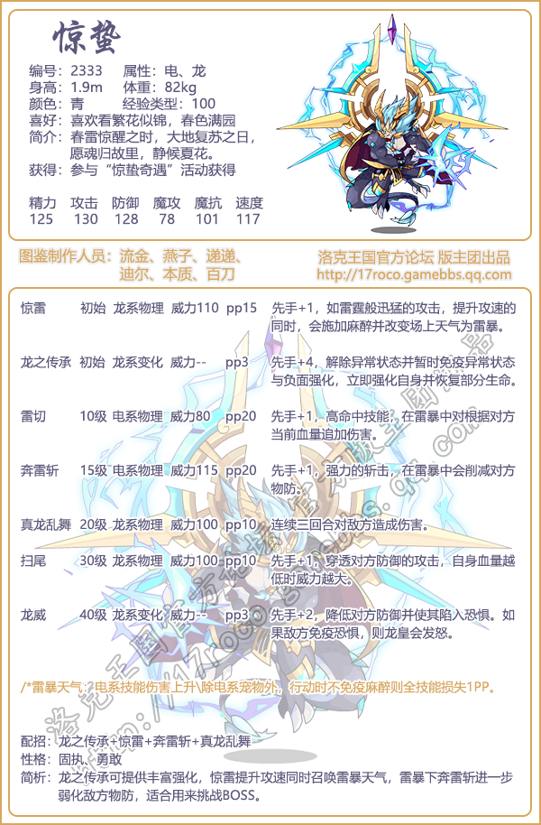 《洛克王国》惊蛰怎么样,厉害吗?游戏中宠物角色非常多,【惊蛰】宠物的技能属性是什么,该如何配招呢?下面小编就给大家带来了《洛克王国》惊蛰技能表图鉴介绍,一起看看吧!