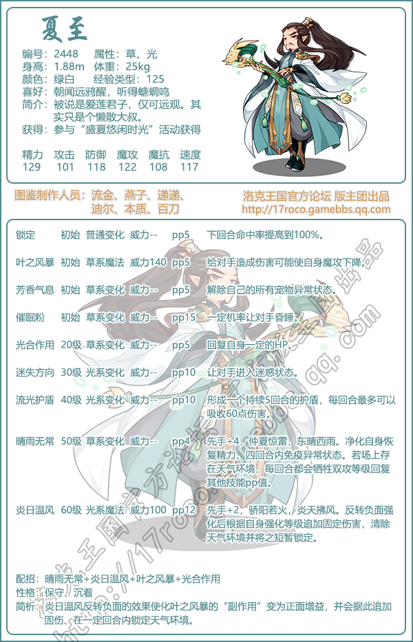 《洛克王国》夏至怎么样,厉害吗?游戏中宠物角色非常多,【夏至】宠物的技能属性是什么,该如何配招呢?下面小编就给大家带来了《洛克王国》夏至技能表图鉴介绍,一起看看吧!