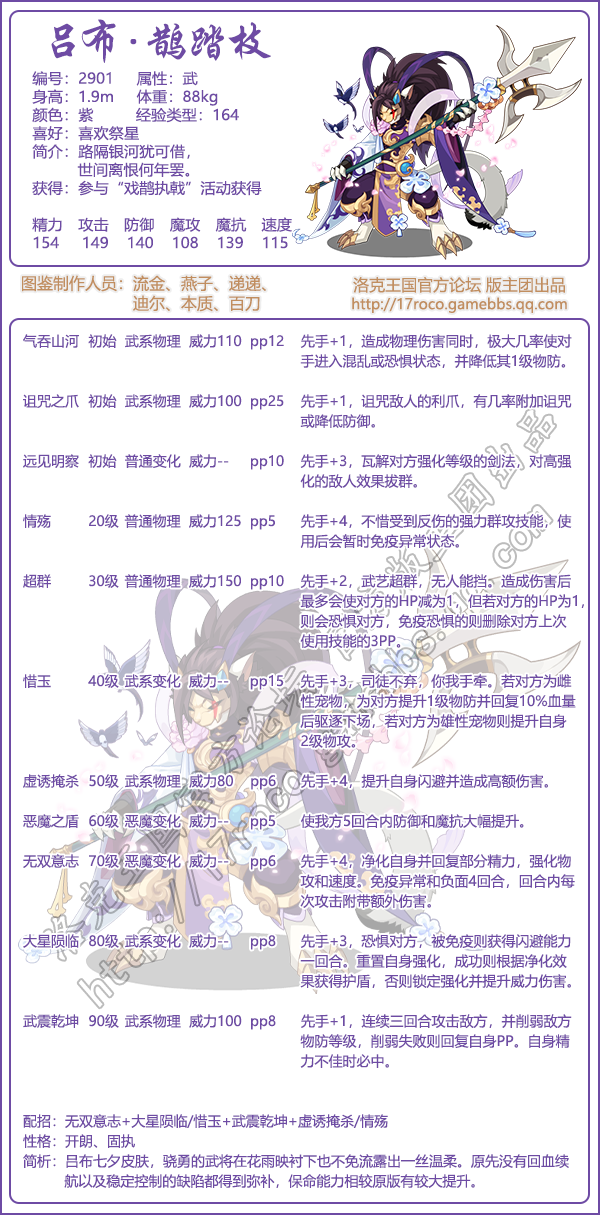 以上就是小编整理带来的《洛克王国》吕布·鹊踏枝技能表图鉴介绍,大家还喜欢吗?更多精彩内容,请点击关注手游网,小编将持续为您更新!