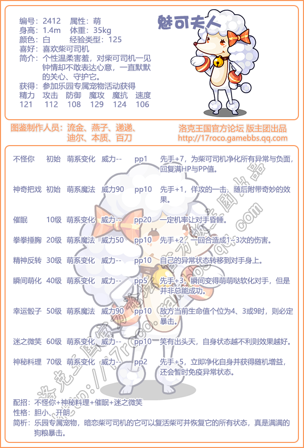 《洛克王国》魅可夫人怎么样,厉害吗?洛克王国手游是一款画风很小清新的RPG类冒险竞技手游,游戏中宠物角色非常多,下面小编就给大家带来了《洛克王国》魅可夫人技能表图鉴介绍,一起看看吧!