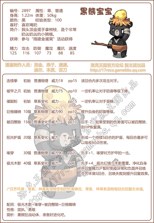 简析:黑熊狂战幼体,准备好进化吧。