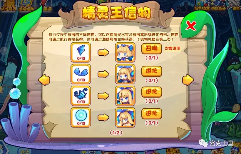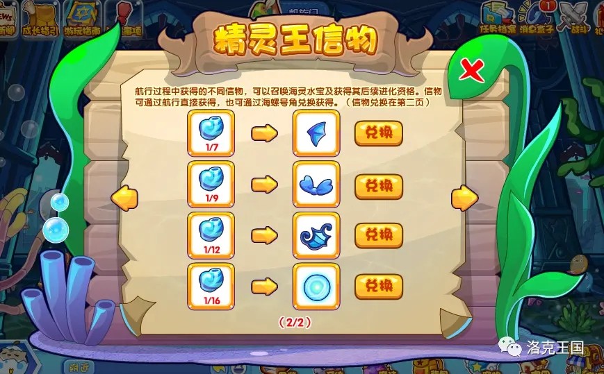那轮到我们的海螺号角就登场啦,通过海螺号角兑换也可以获得不同阶段的水系精灵王信物。