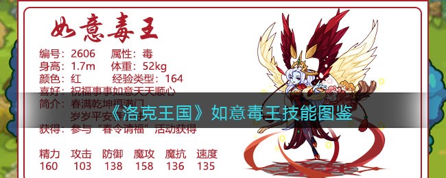 《洛克王国》如意毒王怎么样,厉害吗?洛克王国手游是一款画风很小清新的RPG类冒险竞技手游,游戏中宠物角色非常多,下面小编就给大家带来了《洛克王国》如意毒王技能图鉴介绍,一起看看吧!