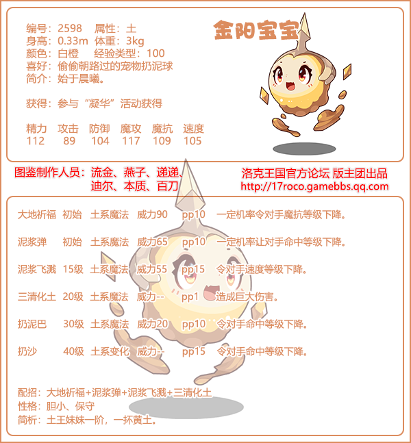 宝进化路线:金阳宝宝→曦阳土灵→骄阳仙子→耀阳土王