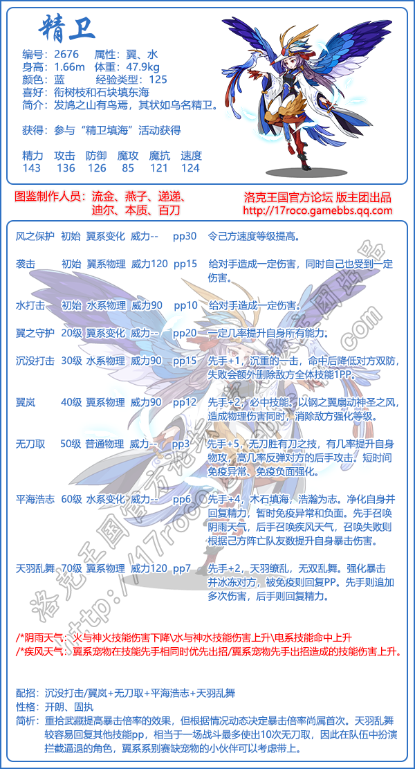 洛克王国精卫怎么样,厉害吗?洛克王国手游中精灵角色非常多,很多宠物大家都想知道他们的技能表是怎么样的,下面是小编给大家带来的《洛克王国》精卫技能图鉴介绍,感兴趣的速来围观吧!
