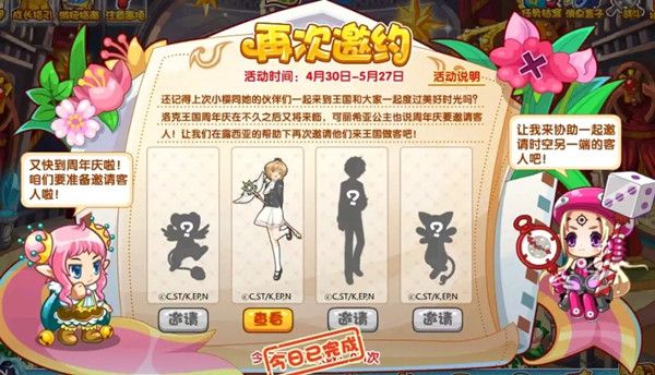活动需要到宴会厅找可莉希亚,点邀请的有四个人,每天只能邀请其中一个,发送邀请所需要的条件有两个,一个是到万事通处领取一只羽毛笔和一瓶墨水就可以书写一份邀请函,领取羽毛笔和墨水需要花6000洛克贝,另外一个则是需要给露西亚提供七枚魔法石,这两个都做完就可以发送邀请了。