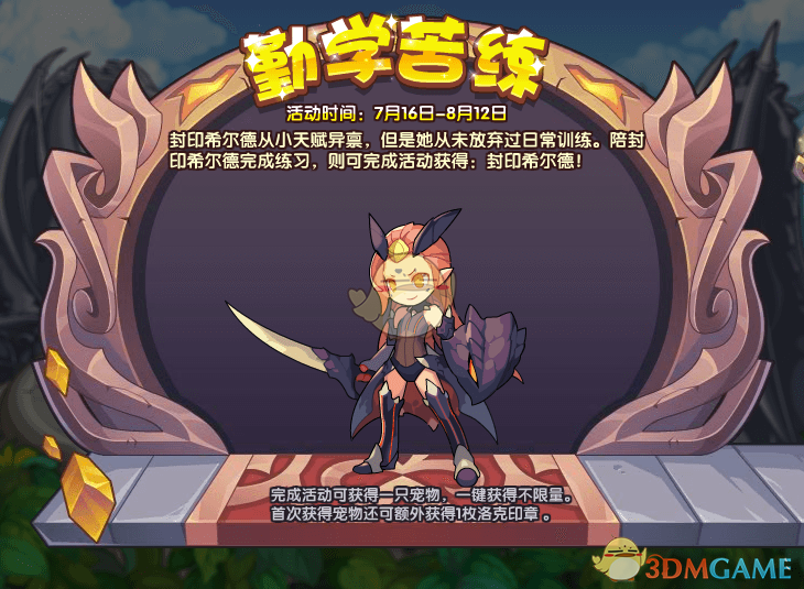 洛克王国十一周年庆期间,参与【勤学苦练】活动,陪封印希尔德完成练习,即可完成活动获得:封印希尔德!