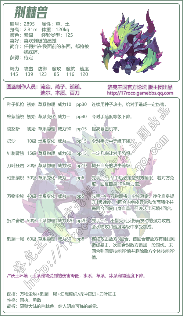 以上就是小编整理带来的《洛克王国》荆棘兽技能图鉴介绍,大家还喜欢吗?更多精彩内容,请点击关注手游网,小编将持续为您更新!