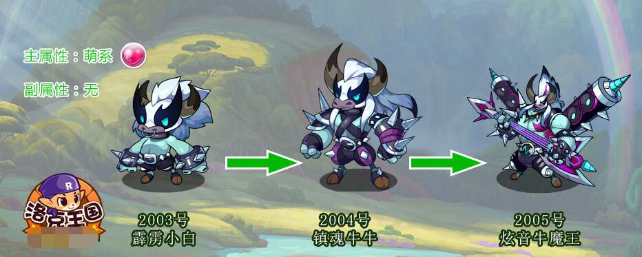 进化路线:霹雳小白→镇魂牛牛→炫音牛魔王