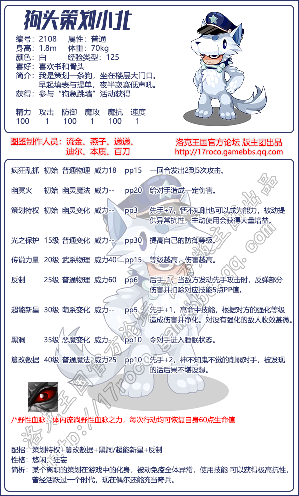 《洛克王国》手游狗头策划小北厉害吗,怎么才能得到这个宠物呢?洛克王国手游是一款画风很小清新的RPG类冒险竞技手游,游戏中宠物角色非常多,下面小编就给大家带来了《洛克王国》狗头策划小北技能图鉴介绍,一起看看吧!