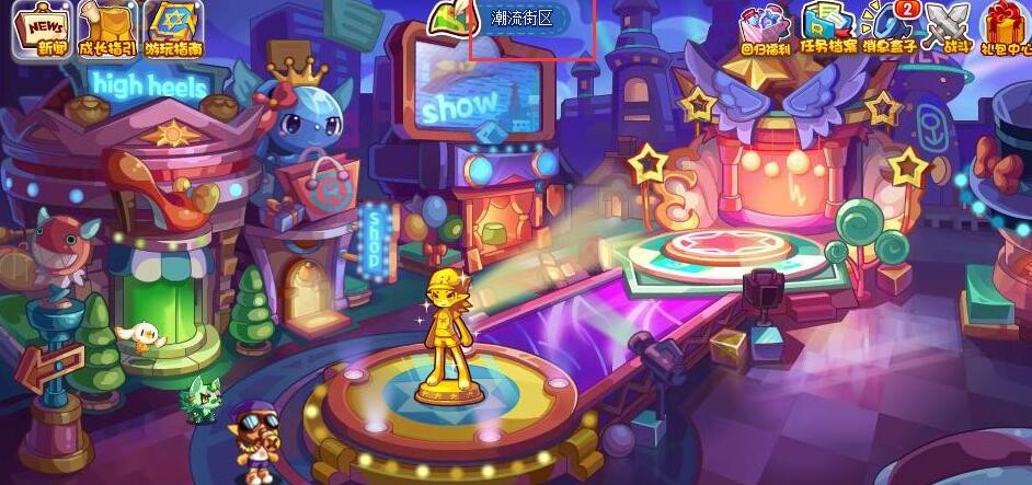 1、进入游戏,点击页面上方的【潮流街区】