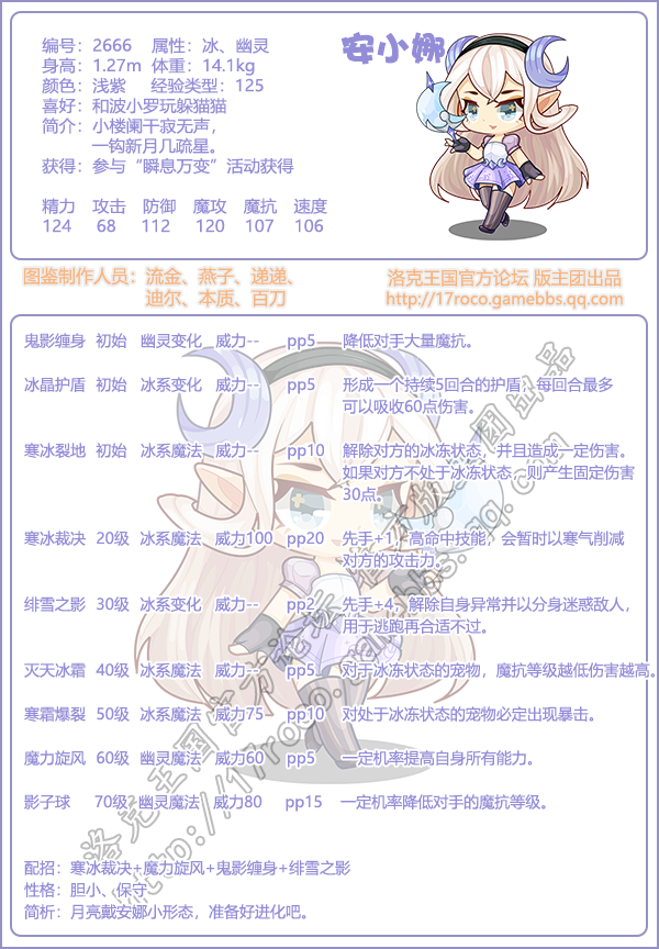 以上就是小编整理带来的《洛克王国》安小娜技能属性图鉴介绍,大家还喜欢吗?更多精彩内容,请点击关注手游网,小编将持续为您更新!