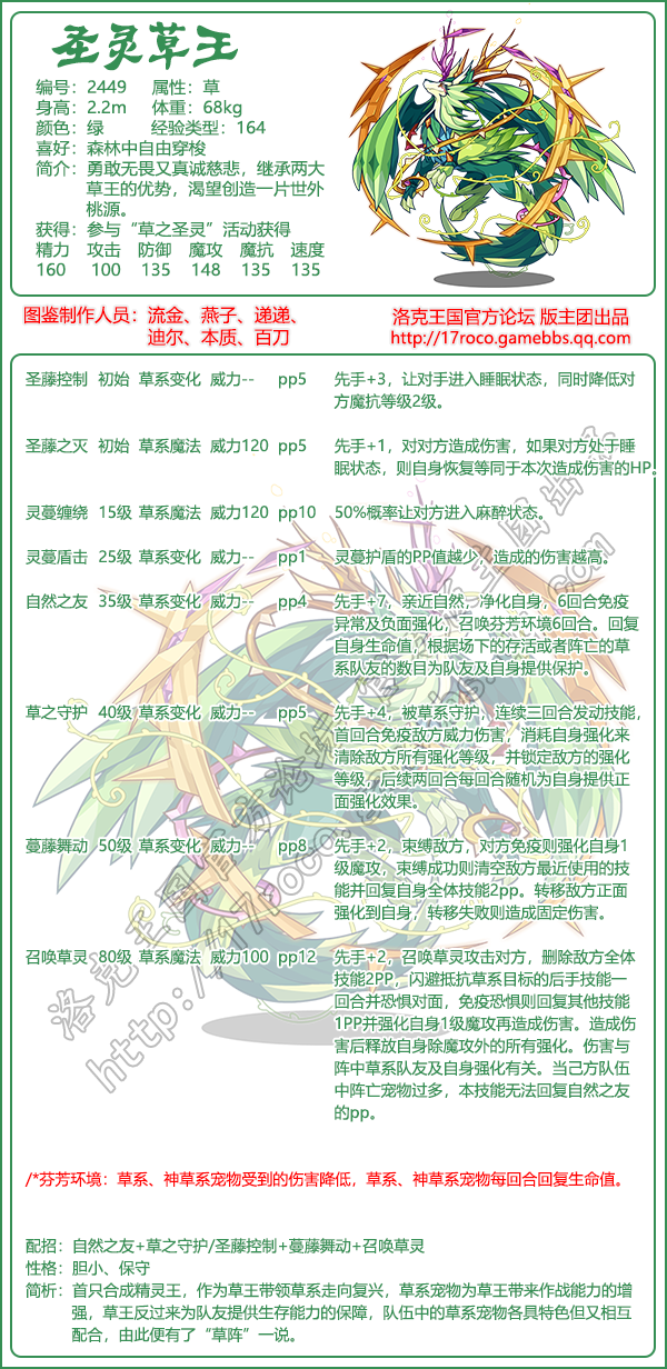 圣灵草王:技能表 | 性格推荐 | 配招推荐 | 获取方法2022