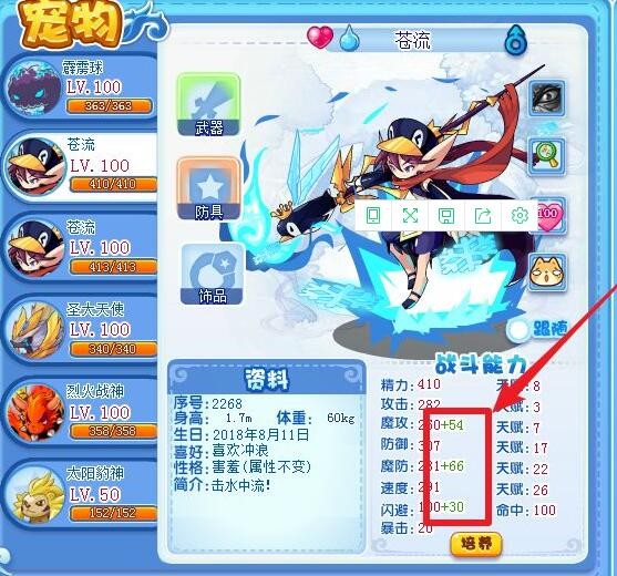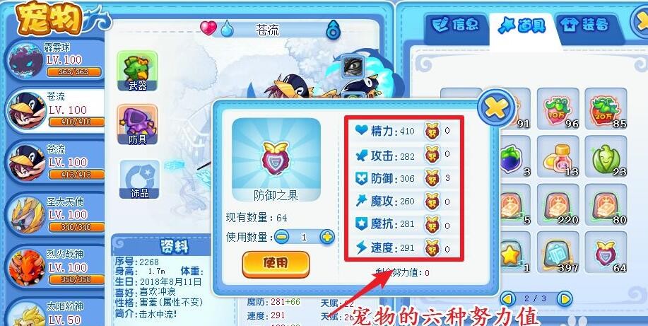 而每只宠物有六种努力值。分别是攻击,物抗,魔抗,速度,精力和魔攻。