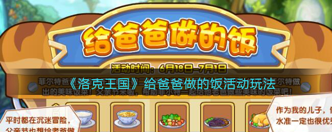 《洛克王国》手游给爸爸做的饭活动怎么玩,活动在哪里进行,奖励是什么呢?这是6月18日更新即将上线的新活动,下面小编就给大家带来了《洛克王国》给爸爸做的饭活动玩法介绍,一起看看吧!