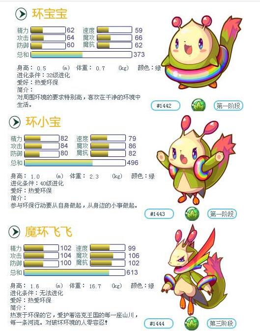 洛克王国环宝宝/环小宝/魔环飞飞种族值