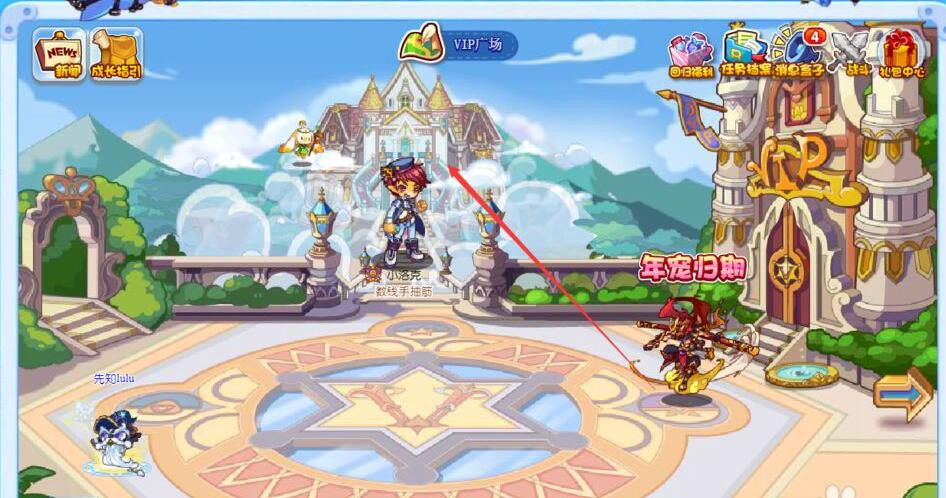打开洛克王国,登录自己的账号,选择频道,来到王国城堡,点击上方地图,找到VIP广场,进入中央的VIP神殿,年费宠物就在这里了。