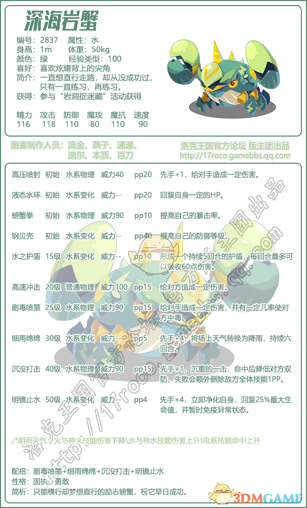 以上就是小编整理带来的《洛克王国》深海岩蟹技能属性图鉴介绍,大家还喜欢吗?更多精彩内容,请点击关注手游网,小编将持续为您更新!