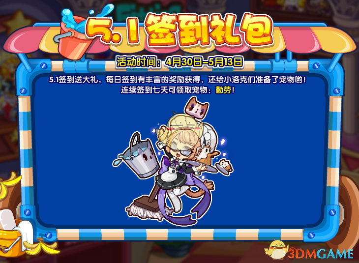 5.1签到送大礼,每日签到有丰富的奖励获得,还给小洛克们准备了宠物哟!连续签到七天可领取宠物:勤劳!