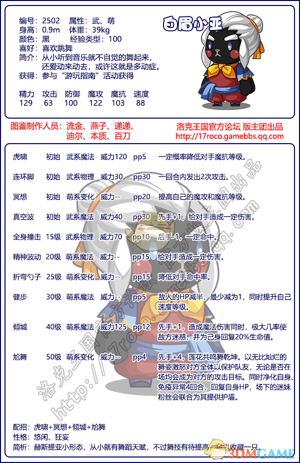 以上就是小编整理带来的《洛克王国》白眉小亚技能属性图鉴介绍,大家还喜欢吗?更多精彩内容,请点击关注手游网,小编将持续为您更新!