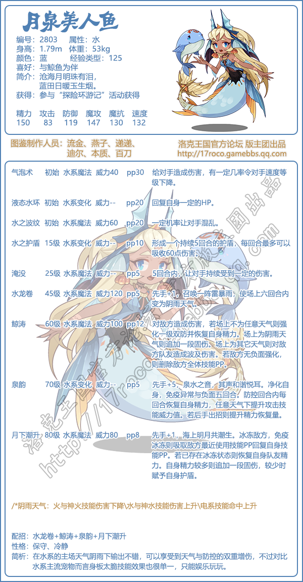 以上就是小编整理带来的《洛克王国》月泉水人鱼技能属性图鉴介绍,大家还喜欢吗?更多精彩内容,请点击关注手游网,小编将持续为您更新!