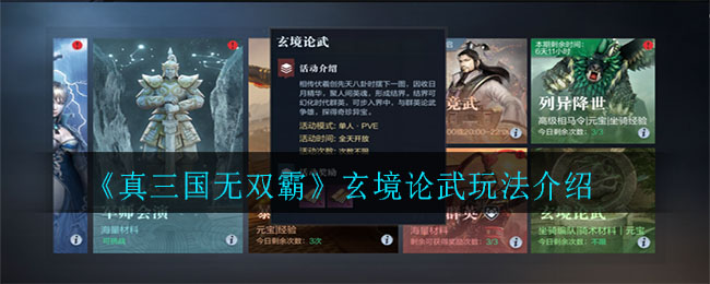 真三国无双霸玄境论武怎么玩?很多小伙伴对于这个模式的玩法不太清楚,那么小编就给大家介绍一下,下面小编给大家带来《真三国无双霸》玄境论武玩法介绍,还不清楚的小伙伴赶紧来看看吧。