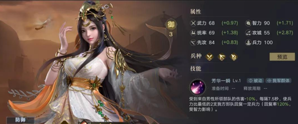 最后的小乔可以同时激活两个[江东二乔]和[琴瑟和鸣]两个将缘效果,并且小乔拥有一定的输出能力,可以给到一定的输出补足。加点给先攻值还有几率开场给对手2支队伍失策效果,先发制人。