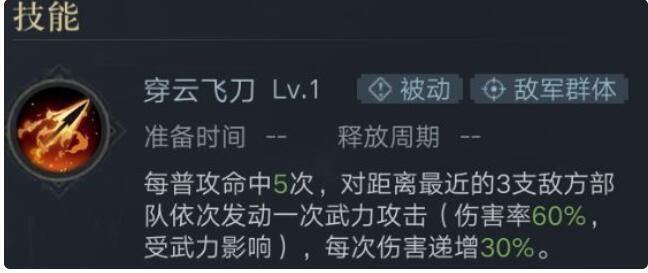 虽然每5次普攻才会触发一次,但是可以通过增加攻击频次的宝物,来减少时间成本。并且每次伤害都会递增,大大提高了输出能力,可以算紫将中最优质的输出武将。并且出货率极高,建议大力培养。