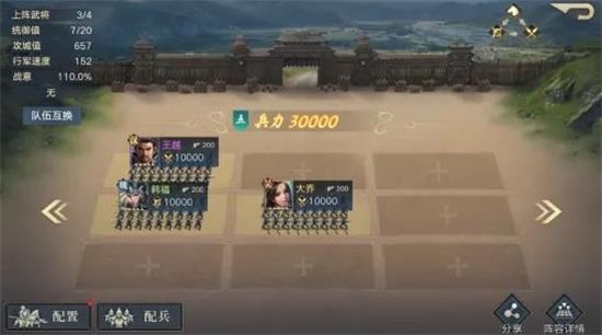 3、中后期阵容的搭配上,玩家可以选择主C-韩福、主T-王越、辅助-华佗&大乔(11御)。同时,亦可搭配刘备+韩福+王越+诸葛瑾;许褚+于禁+曹操+韩福。借助该套阵容的配置,总体的团队强度将得到有效的加持,值得玩家拥有。