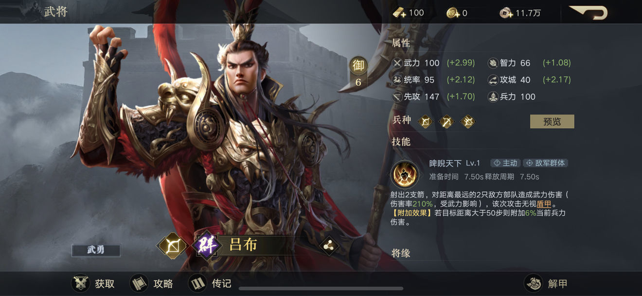 吕布(定位:武勇)⭐️⭐️⭐️⭐️⭐️