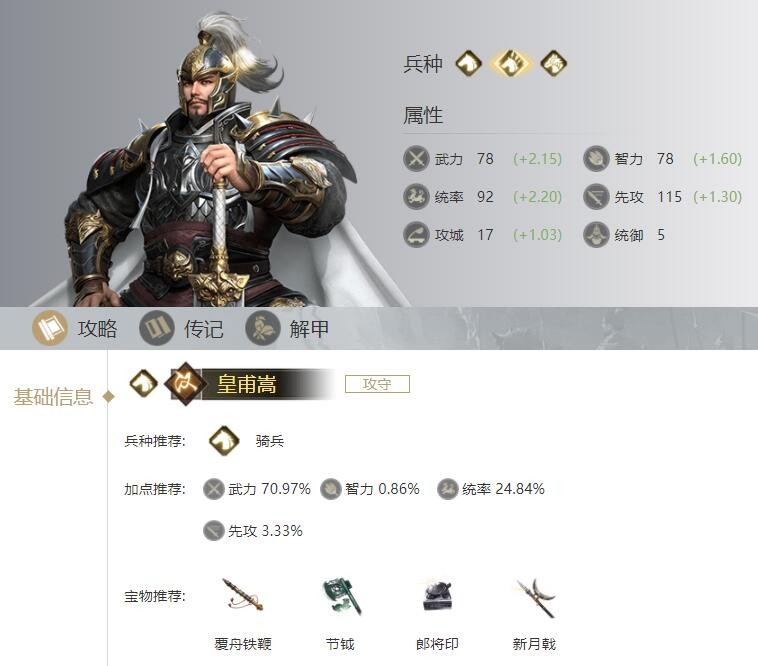 皇甫嵩:技能属性图鉴| 宝物推荐| 阵容推荐 | 加点培养攻略