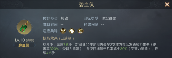 抛开一开始的攻击效果不说,后面的暴击削弱,在面对孙策等以高宝武将时非常有用。