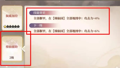 仙宝梯仙辅助属性(仅在梯仙活动中可用):增加场景地图,其中紫色和橙色偃甲的是全部地图增益,蓝色是只在对应地图可用,所以可用考虑优先升级紫和橙色