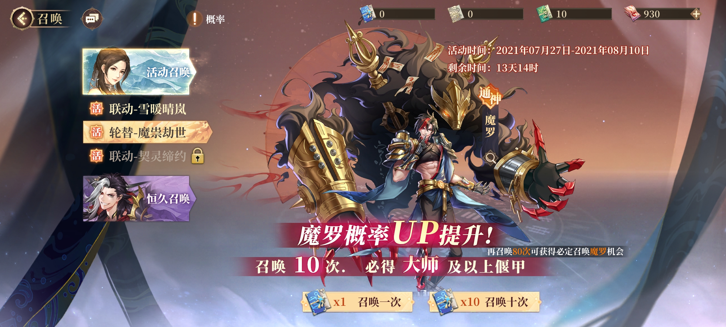 目前有魔罗的专属卡池,80抽必定获取魔罗,如果不是很想刷初始的话,可以抽这个卡池