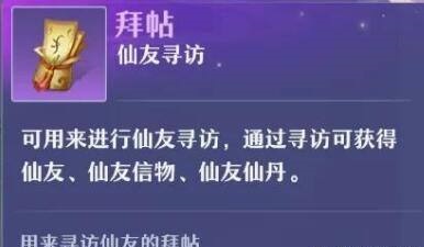 1、玩家可以通过消耗拜帖的方式来寻访结识仙友,以此得到仙友。