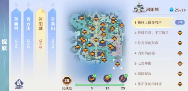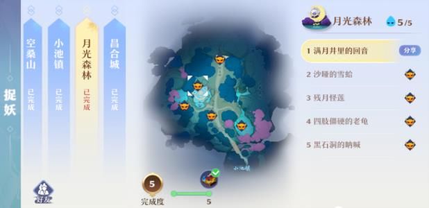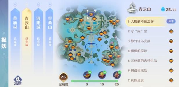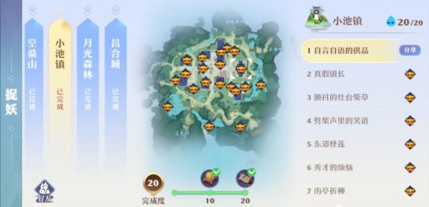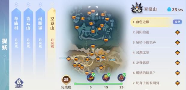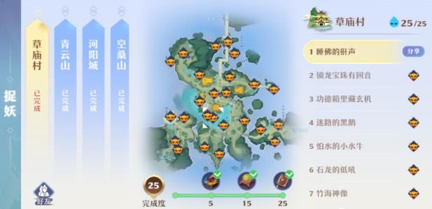 目前游戏中开放捉妖的地图一共有7张草庙村、青云山、河阳城、空桑山、小池镇、月光森林、昌合城,捉妖每次都可以拿小金丹,完成相应数量还可以拿天玄宝图和高书。