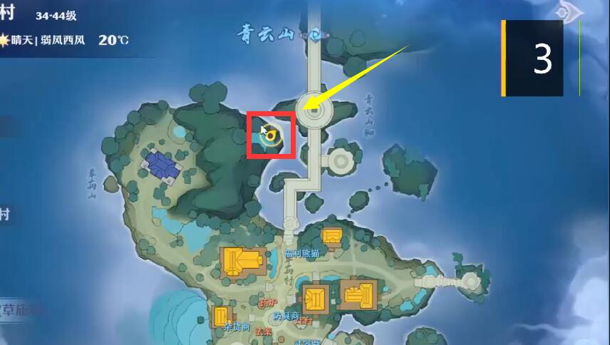 1、首先打开游戏,前往下图青云山左边的位置;