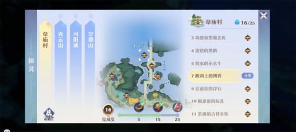 1、这个探灵勇敢的阿瀚位置如下图所示,大家在完成第七个断剑上的博弈的时候可以找到。