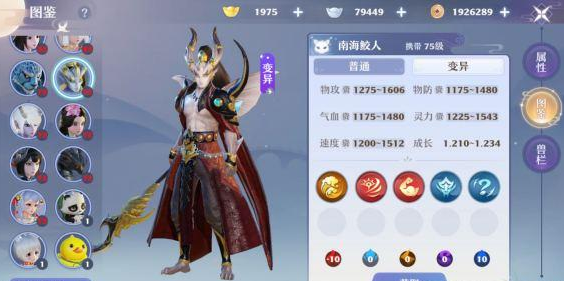 资质成长都是正常的75级标准,值得注意的是他的攻资突破了1600,但整体设定上其实南海鲛人属于物法双修的类型,天生四个技能都很垃圾。