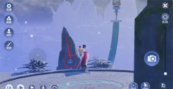 2、之后在这里找到一块大石头,石头上面有个熊猫面具,靠近交互;