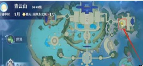 首先打开游戏,前往青云山的右上角位置;