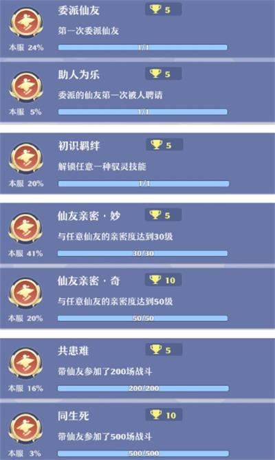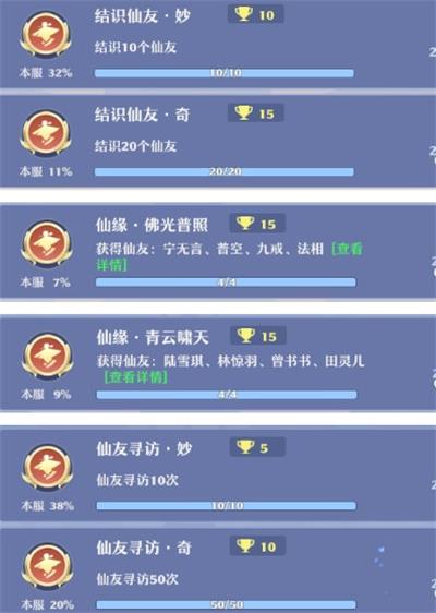 【仙友】除了一些特定的仙友难获取外,以下的成就都是可以轻松完成的