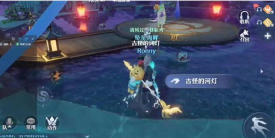 最后来到中央平台,和古怪的河灯交互,即可完成任务啦~