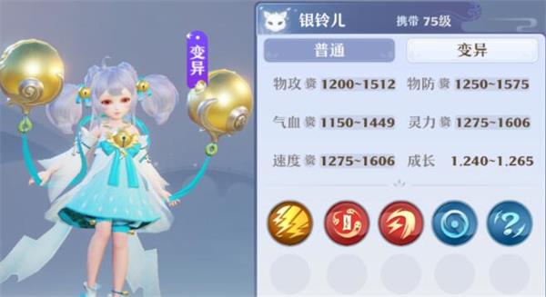 神兽进阶功能开放前,银铃儿拥有目前全宠物中最高的成长和灵力资质。非常适合做成单法宝宝,法连基本一炮一个隐攻宝宝,将成为几乎所有物理宝宝的噩梦,当然你喜欢做成群法也可以,但最好是固定队人均群法银铃儿效果更佳