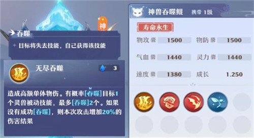 1、给敌人造成高额的单体物理伤害的时候,有几率是可以吞噬1位灵兽的被动技能。