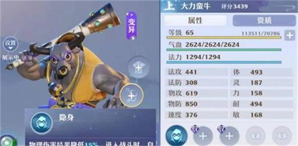 其中我找了下面3只牛来做测试:分别是1技能,4技能和6技能,测试结果发现:对方灵兽被动技能的数量并不能影响吞噬的成功率!