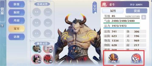 训练就是提升灵宠等级,需要比人物等级低方可使用。