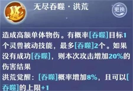 在技能原有的基础上,吞噬几率+8%,吞噬技能+1
