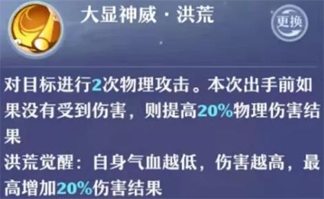 觉醒技效果非常强,在小灰速度内卷的情况下,拥有觉醒技的小灰不再过分追求速度,一样能打出爆炸伤害,如果当前回合没有受到伤害的情况下,残血最多能额外增加40%伤害结果,再加上蛮劲灵巧物穿能追求极致的输出,只不过经过擂台实测觉醒效果不明显,甚至可以说没效果,可能是还没实装,毕竟这是只新神兽,而且要求世界等级达到85才开放