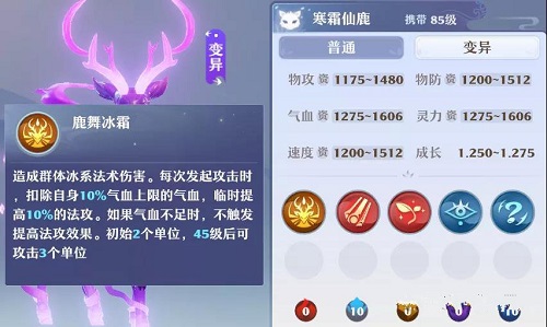 3、天生技能+法连+法暴+健壮+精魅+冰亲和+格挡,驭灵技能深谋远虑+生龙活虎,加点仍然推荐7灵3体或者6灵4体,这套打法的生存能力依然出众,格挡能让你的小鹿在群英榜中遇到对手物理飞机队都不会过于脆皮。精魅适合没什么机会召唤灵兽的门派使用,尤其在兽神的挑战中使用率高。